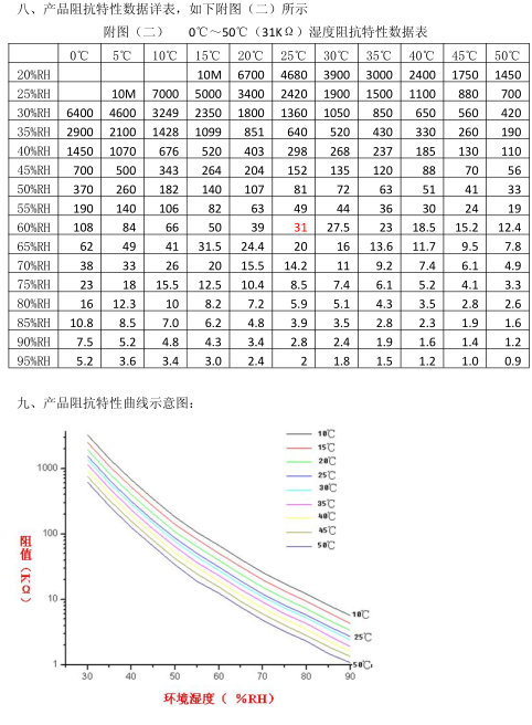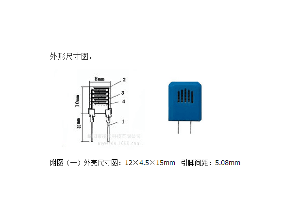 該產品名為電阻型高分子濕度傳感器(濕敏電阻),是一種新型的濕度敏感元件,采用功能高分子膜涂敷在帶有導電電極陶瓷襯底上,形成阻抗隨相對濕度變化成對數變化的敏感部件,導電機理為水分子的存在影響高分子膜內部導電離子的遷移率。