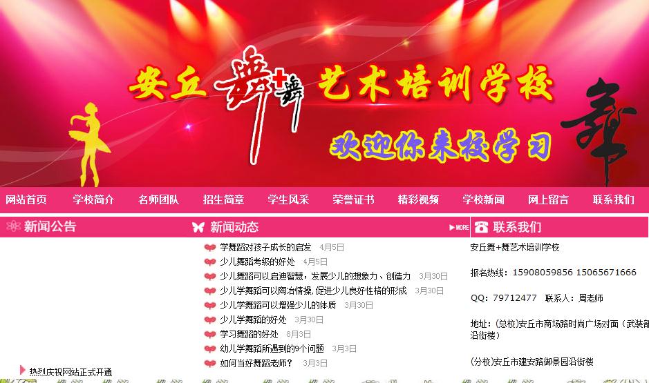 09、10年該基地少兒舞班,拉丁舞班分別榮獲國(guó)內(nèi)各類舞蹈大賽一、二等獎(jiǎng),并連年應(yīng)邀參加我市電視臺(tái)春節(jié)聯(lián)歡晚會(huì)等大型演出活動(dòng),校長(zhǎng)在該活動(dòng)中擔(dān)任舞蹈編導(dǎo),所演節(jié)目受到市委、市府領(lǐng)導(dǎo)的一致肯定。07年8月臺(tái)灣土風(fēng)舞蹈團(tuán)團(tuán)長(zhǎng)魏淑靖教授應(yīng)邀來(lái)我校指導(dǎo)教學(xué)。09年8月特邀文化部?jī)?yōu)秀專家、博士生導(dǎo)師劉俊驤教授來(lái)我校指導(dǎo)教學(xué)。10年我校藝術(shù)高考生取得了可喜的成績(jī),分別通過(guò)了北京電影學(xué)院、寧夏大學(xué)、延邊大學(xué)、西南民族大學(xué)、長(zhǎng)江師范大學(xué)、山東師范大學(xué)、濰坊學(xué)院等高等院校的專業(yè)考試,是該基地高考學(xué)員專業(yè)合格率達(dá)100%。09年該校被山東電視臺(tái)評(píng)為特邀誠(chéng)信單位,同年校長(zhǎng)被評(píng)為濰坊市技術(shù)能手榮譽(yù)稱號(hào)。