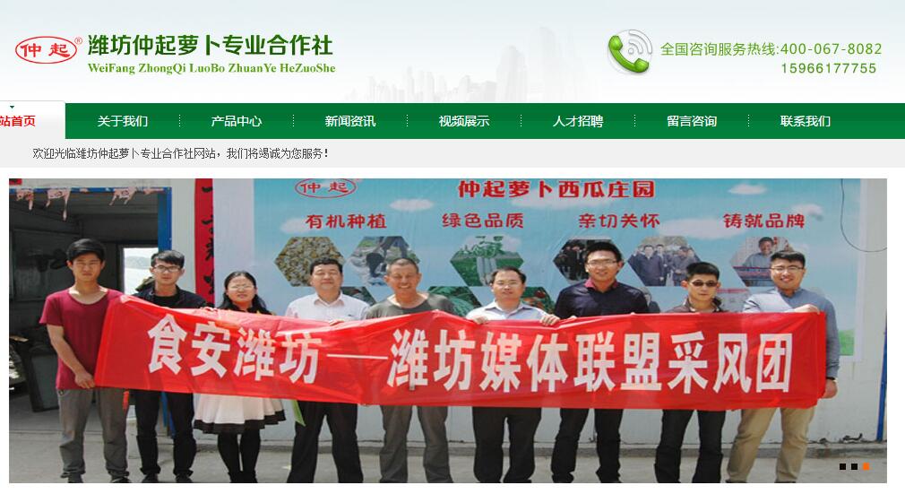 濰坊仲起蘿卜專業合作社成立于2010年,是集蘿卜、西瓜及有機農產品種植、精深加工、銷售為一體的農業新型合作組織。該社現有蘿卜種植面積680余畝,西瓜種植面積160余畝,400平方米恒溫冷庫一座,現已發展成為濰城區重要的青蘿卜與西瓜種植培育基地。