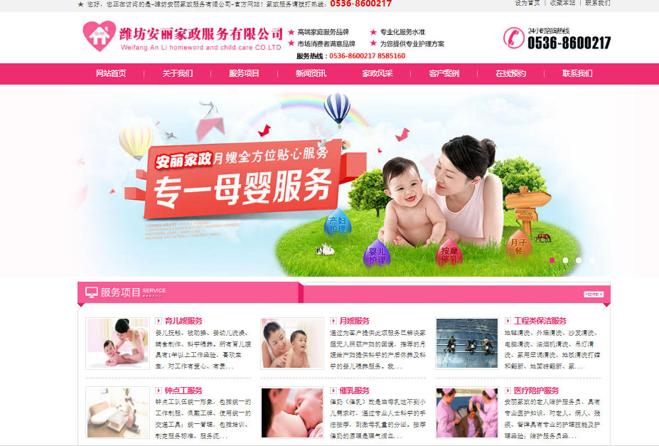 濰坊安麗家政服務中心創建于2002年,現注冊為“濰坊安麗家政保潔有限公司”。經過近十年的發展,我公司已發展為擁有十幾家長期物業保潔合作單位,多家定期保潔企業。公司設有家庭部、工程部、物業部,總計保潔人員87名,其中管理人員7名. 本公司是濰坊地區成立最早的家政公司之一,近十年來,良好的信譽和對客戶負責任的態度,逐漸在市民心中成為有口碑的老字號品牌企業。2010年被濰坊電視臺、濰坊晚報評為“消費者滿意單位”、“濰坊家政協會副會長單位”、“市工商聯合會理事單位”、“濰坊家政網絡中心”12343聯動協作單位、濰坊民生服務大廳優秀窗口企業。